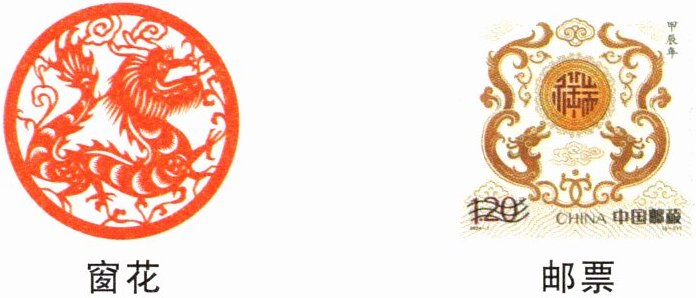 @@示例:窗花中的龙威猛雄壮,昂首阔步,充满活力,寓意喜庆吉祥、蒸蒸日上。邮票中,两条龙如祥云般飞腾,共同托举包含“祥瑞”二字的圆球,寓意着国泰民安、和谐幸福。龙在中国传统文化中占据着重要的地位,它以其丰富的内涵和深远的象征意义,成为中华民族的精神图腾。【解析】阅读材料三的两幅图可知,左边的图是窗花中的龙,图中的龙展爪飞翔,昂首阔步,充满活力,寓意着喜庆吉祥、蒸蒸日上。右边的图是邮票中的龙,图中的两条龙如祥云般飞腾,共同托举包含“祥瑞”二字的圆球,寓意着国泰民安、和谐幸福。据此将这两幅图的内容以及寓意描述出来并加以总结,意思对即可。