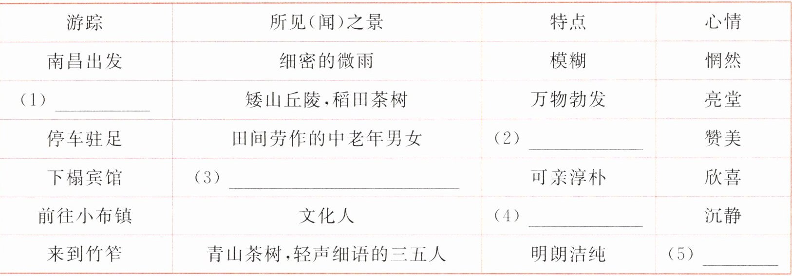 6. 梳理游踪。本文记述了作者在宁都游览的经历,请你理清脉络,完成表格。