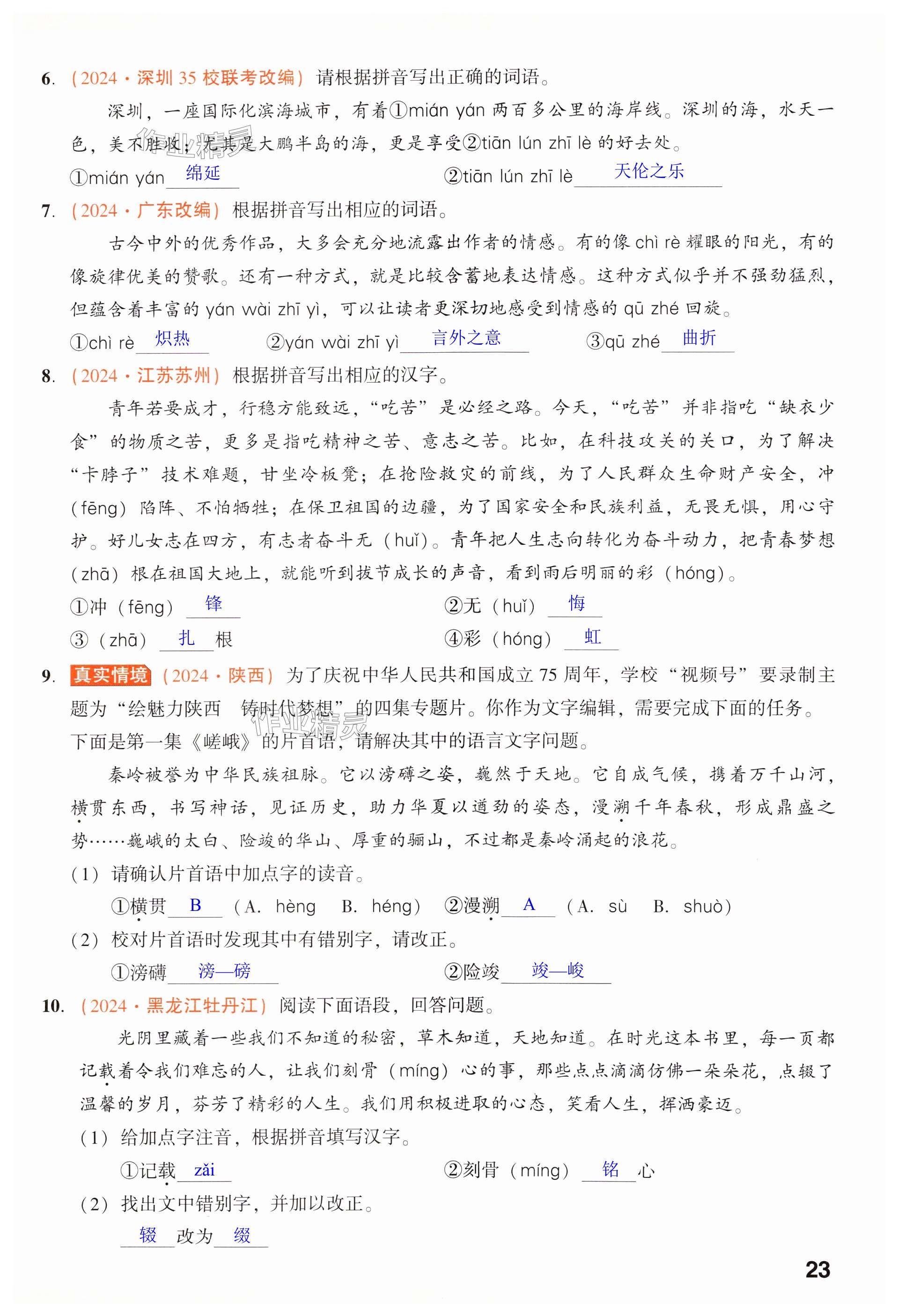 注:目前有些书本章节名称可能整理的还不是很完善,但都是按照顺序排列的,请同学们按照顺序仔细查找。练习册 2025年语文总复习深圳专版 答案主要是用来给同学们做完题方便对答案用的,请勿直接抄袭。