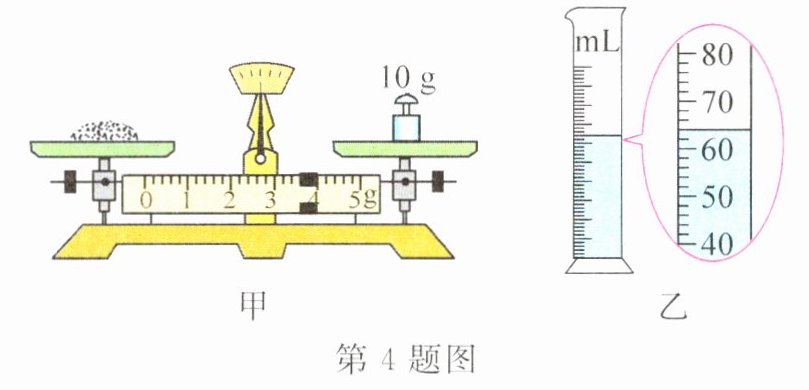 ③ 用量筒取60 mL水,全部倒入烧杯中,再将盐倒入烧杯,搅拌至其完全溶解,再将盐水倒入量筒中,如图乙所示;