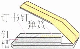 10. 如图所示是一种常见的订书机,钉槽内的订书钉之所以不会松脱,是因为固定在槽内后部的弹簧给订书钉一个向________(选填“左”或“右”)的弹力,这个力的施力物体是________.在使用过程中,随着订书钉的减少,这个力将________(选填“增大”“减小”或“不变”).
