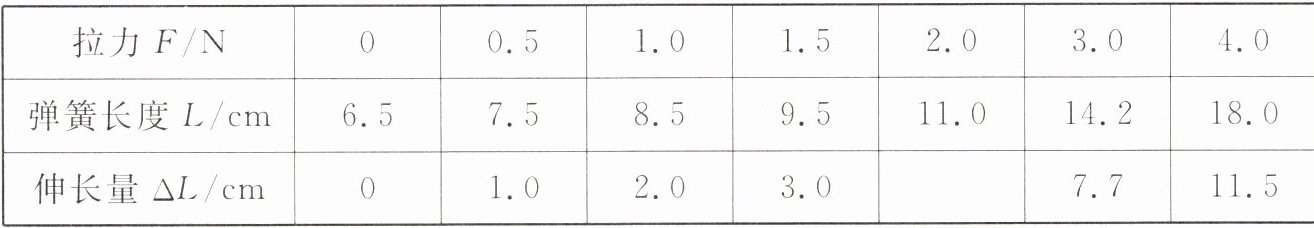 11. 小红用一根弹簧完成如下实验:将弹簧的一端固定,另一端悬挂钩码,探究弹簧的伸长量与它受到的拉力之间的关系,记录实验数据如下表.