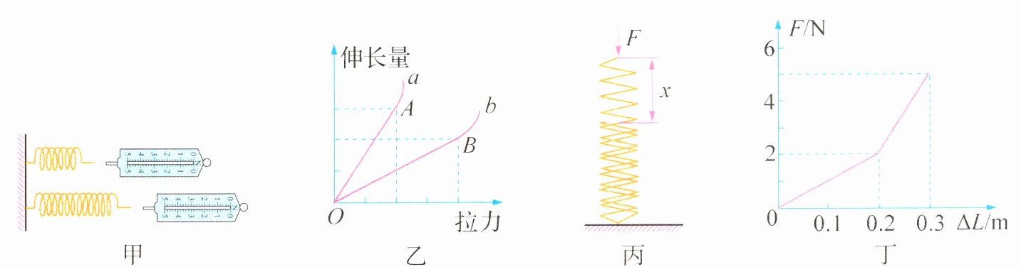 (4)用两根轻质弹簧可以模拟汽车悬架,如图丙,在一根大弹簧内套有一根小弹簧,它们的下端都固定在水平面上,压缩该弹簧组合,测得压力F与压缩距离ΔL的关系图像如图丁.当两根弹簧均处于自由状态时,它们上端点间的距离x =________m.