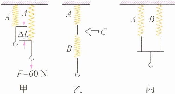 (1)把弹簧A的一端固定在天花板上,用60 N的力竖直向下拉弹簧A(如图甲),则弹簧A的伸长量ΔL是多少?