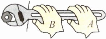 9. 如图所示,用扳手拧螺母时,沿顺时针方向可将螺母拧紧,沿逆时针方向可将螺母拧松.这说明力的作用效果与__________有关;若在A点或B点用力拧开螺母,在A点用力拧更容易些,这表明力的作用效果与__________有关.