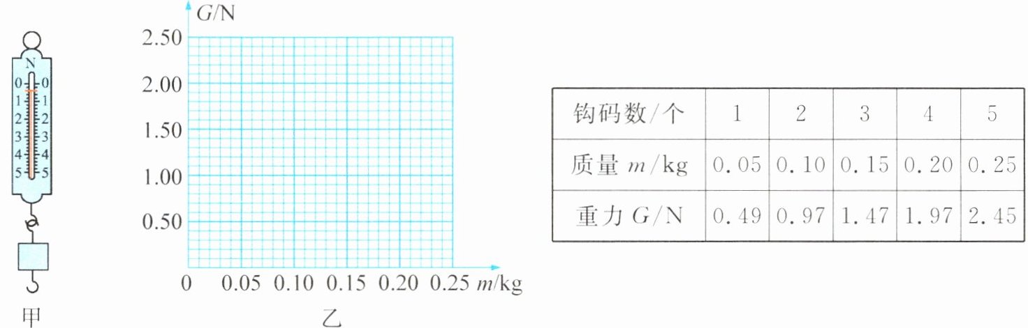 8.(2024·江西南昌月考)在探究“重力与质量的关系”实验中,采用的实验装置如图甲所示.实验中,以钩码作为被测物体,每个钩码的质量均为50 g.