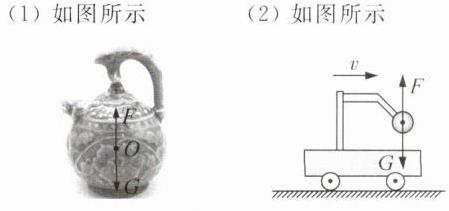 (1)(2024·山东菏泽)如图甲所示,五代时期的文物倒流壶静止在博物馆的水平展台上. 请在O点画出倒流壶受到的重力G和支持力F的示意图.