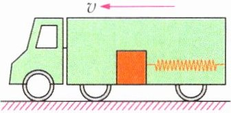 9. 如图所示,一辆卡车沿平直路面向左行驶,车厢底部有一滑块(与厢底间摩擦不计),一轻质水平弹簧一端固定在车厢右壁,另一端与滑块相连. 下列说法正确的是 ( )