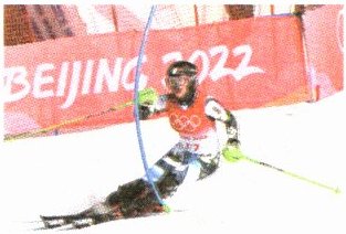 1. 如图,高山滑雪比赛中,运动员与旗门杆(弹性杆)发生碰撞,导致运动员滑行速度明显变慢且杆明显变弯,碰撞过程中,杆阻碍运动员滑行的力与运动员撞击杆的力属于( )