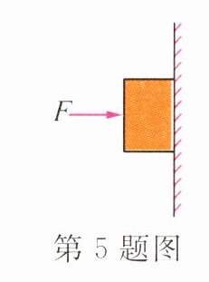 5. 如图所示,小明用力$F$把一个木块压在竖直墙壁上静止,则木块所受的摩擦力$f$和木块所受的重力$G$是一对_______;小明对木块的压力$F$和墙壁对木块的弹力$F_{弹}$是一对_______.(均选填“平衡力”或“相互作用力”)
