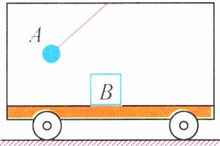 1. 一辆小车在水平地面上沿直线运动,车内绳子拴住的小球 A 和物块 B 在如图所示位置相对车厢静止. 则 ( )