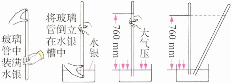 D. 若玻璃管中混有空气,测出的玻璃管中水银柱的高度将小于760 mm