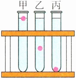 4. 在检测病人血液的密度时,某护士分别取一滴体积相同的血液滴入三支装有不同密度检测液的试管中,一段时间后出现了如图所示的情形,丙试管中血液自身重力________(选填“大于”“小于”或“等于”)排开检测液的重力,测试________(选填“甲”“乙”或“丙”)试管中检测液的密度就可得到血液的密度.