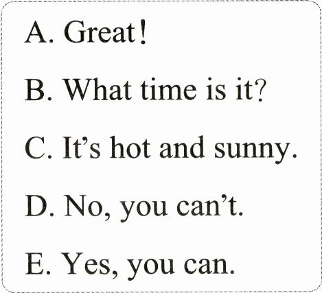 Kitty: OK! Can I watch the weather report on TV? C. It’s hot and sunny.