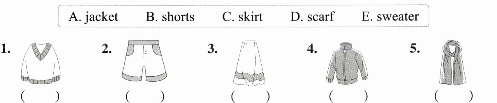 ( )5. A. sc**ar**f B. w**ar**m