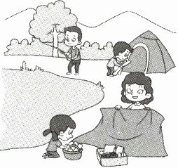 Last weekend, Peter went camping with his family in a park. There was a big lake in the park. Peter went fishing with his father by the lake. His sister rode a horse. Then they cooked the fish for lunch. It was so delicious. They were very happy. They had a great time.