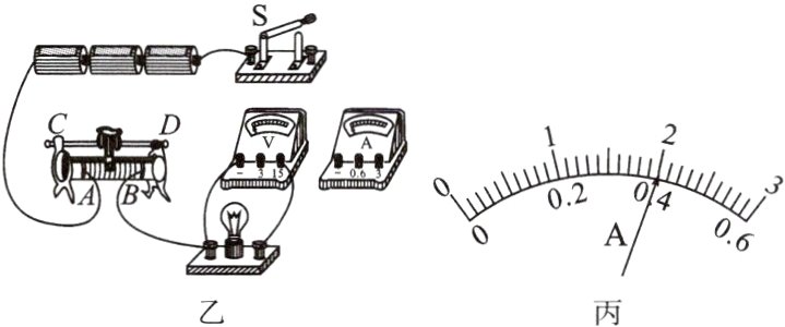 (3)测量过程中,当电压表的示数为______V时,小灯泡正常发光,此时电流表的示数如图丙所示,则小灯泡的额定功率为______W。