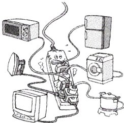 4. 如图所示,通过插座接入电路的用电器同时工作时,电路中用电器的总功率过大,引起干路中的电流______。根据焦耳定律可知,干路中的电流产生过多的________,使导线的温度急剧升高,从而烧坏插座和干路的导线,容易引起火灾。