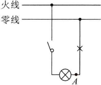 6. 如图所示的家庭电路,当闭合开关时,发现电灯不亮。若原因是图中画“×”的位置发生了断路,则在开关闭合的情况下,用试电笔测试电路中A点时,试电笔氖管______(选填“会”或“不会”)发光。