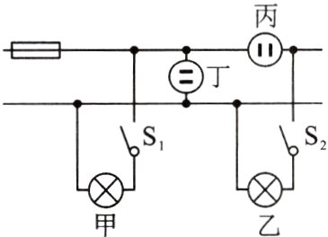 A. 电路中甲、丁串联