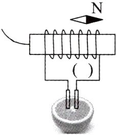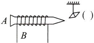 6. 探究“电磁铁的性质”实验时,铁钉A端为N极,附近的小磁针处于静止,如图所示。标出B点电流方向,并在图中括号内标出小磁针右端的磁极(用“N”或“S”表示)。