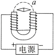 3. 在图中标出通电螺线管磁场中静止的小磁针的N极和磁感线a的方向。