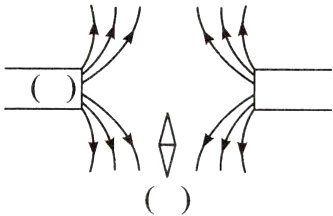 1. 如图,根据小磁针静止时的指向,在( )内标出磁体的磁极,并标出磁感线的方向。