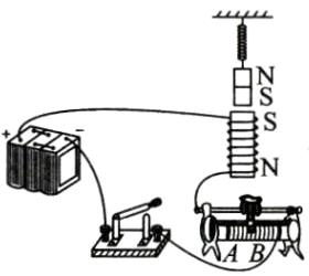 ①当闭合开关,滑动变阻器的滑片向A端滑动时弹簧伸长;
