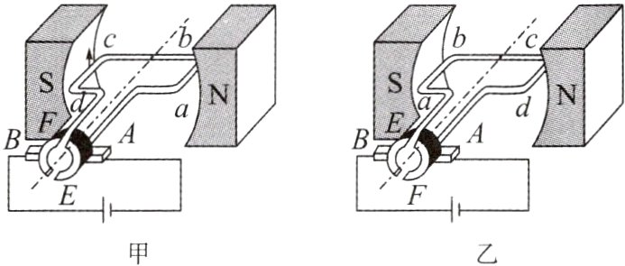 10. 如图所示,图甲和图乙分别为直流电动机线圈在两个不同的时刻所处的位置,下列分析中正确的是( )