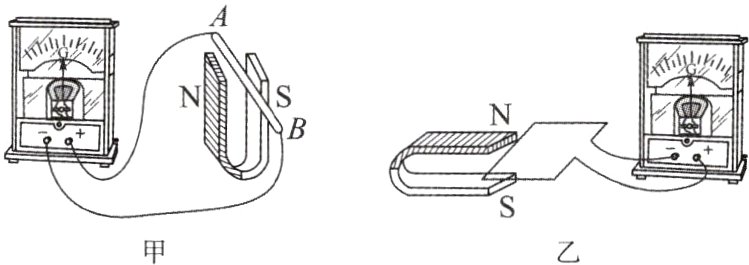(1) 如图甲所示,保持蹄形磁体竖直放置,使导体AB从图示位置向上运动,电路中______(选填“有”或“无”)感应电流;