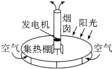 16.(物理与科技)如图所示,这是我国在宁夏建造的一座实验性发电站的示意图。阳光穿过透明的集热棚顶使棚内空气变热,热空气从烟囱中上冲,带动发电机发电。这种发电站利用的能源是______能。这种发电站______(选填“能”或“不能”)将获得的能量完全转化为电能。这种发电方式与火力发电相比优点是____________________(写出一条即可)。