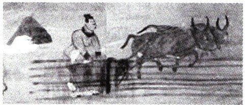 B [东汉时期边疆地区进行铁犁牛耕生产,说明当时该地区的生计方式受中原影响,B项正确;据材料无法得知画中人物的身份,排除A项;当时的耕作方式并不完善,排除C项;当时该地区仍以游牧经济为主,排除D项。]