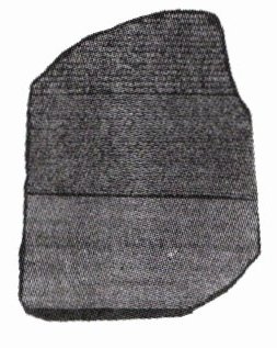 材料 罗塞塔石碑(Rosetta Stone),制作于公元前196年,刻有古埃及国王托勒密五世登基的诏书。石碑上用希腊文字、古埃及文字和当时的通俗体文字刻了同样的内容,这使得近代考古学家得以有机会解读出已经失传千余年的埃及象形文字。