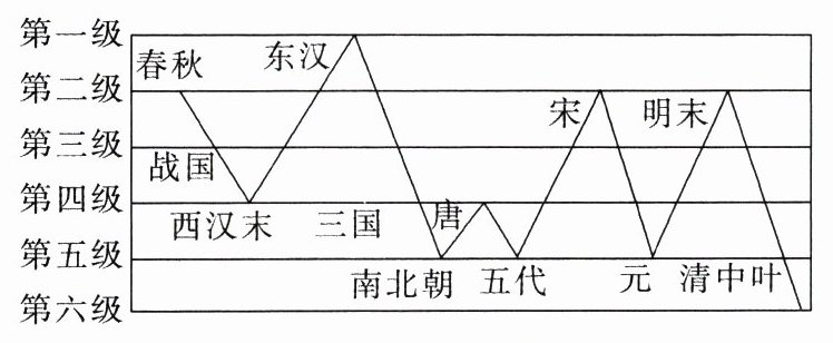 材料 20世纪初,梁启超发表《新民说》,认为要使我国立于世界民族之林,赖“民德”的培育。民德分为私德与公德,“人人独善其身者谓之私德,人人相善其群者谓之公德。”他将春秋以来的“民德”按优劣分为第一至第六共6个等级,认为东汉儒学最盛,士人崇尚气节,民德最优。其所作《中国历代民德升降表》如下: