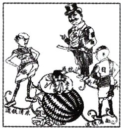 4.(2023·重庆卷,7)右图为1908年著名漫画家马星驰创作的一幅时事漫画(局部),它反映了 ( )