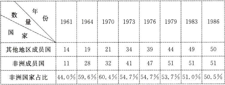 C [20世纪50-90年代,非洲大陆经历了大规模的去殖民化运动,新兴独立国家数量增多,殖民体系走向崩溃,故选C项;1961-1986年处于冷战时期,国际局势还是较为严峻,排除A项;经济全球化深入发展是在20世纪90年代之后,排除B项;二战后区域集团化趋势逐渐加强,但与材料现象关联性不大,排除D项。]