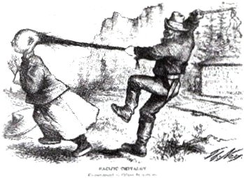4. (2024·浙江金华十校二模)如图为美国著名漫画家纳斯特于1869年创作的一幅名叫《和平的骑士》的漫画,图中挥舞着鞭子的牛仔形象代表美国白人,留着辫子的人物形象代表华人。对该漫画寓意解读合理的是 ( )