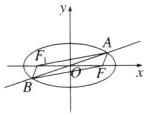 例1 (1)已知F是椭圆$\frac{x^{2}}{a^{2}}+\frac{y^{2}}{b^{2}} = 1(a>b>0)$的一个焦点,若过原点的直线与椭圆交于A,B两点,且$\angle AFB = 120^{\circ}$,则椭圆离心率的取值范围是 ( )