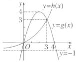 ,这两个函数图象的交点为(0,0),(3,3),因为$g(x)_{max}=4$,$h(x)>-1$,所以由图可知$m$的取值范围是(-1,0)∪(0,3)∪(3,4)。
