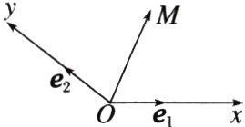 3. (多选)如图所示,设Ox,Oy是平面内相交成$θ(θ≠\frac{π}{2})$角的两条数轴, e₁,e₂分别是与x,y轴正方向同向的单位向量,则称平面坐标系Oxy为θ反射坐标系,若$\overrightarrow{OM}=xe₁ + ye₂,$则把有序数对(x,y)叫做向量$\overrightarrow{OM}$的反射坐标,记为$\overrightarrow{OM}=(x,$y),在$θ=\frac{2π}{3}$的反射坐标系中,a=(1,2),b=(2, - 1),则下列结论中,正确的是 ( )