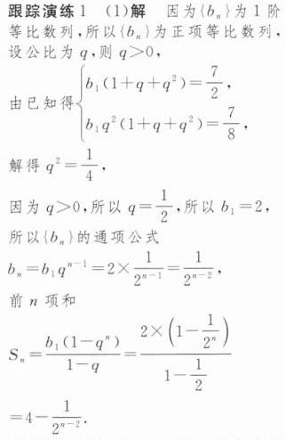 (1)若数列$\{ b_{n}\}$为1阶等比数列,$b_{1}+b_{2}+b_{3}=\frac{7}{2}$,$b_{3}+b_{4}+b_{5}=\frac{7}{8}$,求$\{ b_{n}\}$的通项公式及前$n$项和;