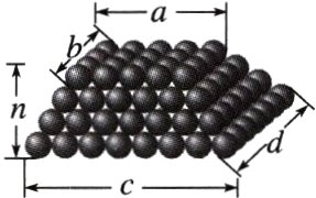 1. (2024·黄山统考)北宋数学家沈括博学多才、善于观察.据说有一天,他走进一家酒馆,看见一层层垒起的酒坛,不禁想到:“怎么求这些酒坛的总数呢?”,沈括“用刍童(长方台)法求之,常失于数少”,他认为堆积的酒坛、棋子等虽然看起来像实体,但中间是有空隙的,应该把他们看成离散的量.经过反复尝试,沈括提出对上底有$ab$个,下底有$cd$个,共$n$层的堆积物(如图),可以用公式$S=\frac{n}{6}[(2b + d)a+(b + 2d)c]+\frac{n}{6}(c - a)$求出物体的总数.