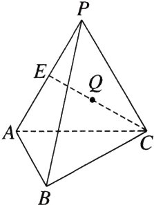 例1 三棱锥P - ABC的底面是以AC为底边的等腰直角三角形且AC = 2$\sqrt{2}$,各侧棱的长均为3,点E为棱PA的中点,点Q是线段CE上的动点.