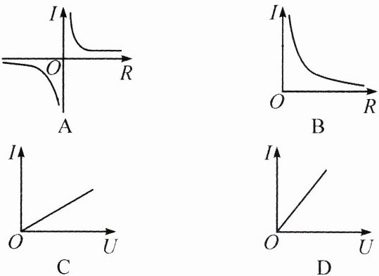 6.已知电压$U$、电流$I$、电阻$R$三者之间的关系式:$U = IR$(或者$I = \frac{U}{R}$),实际生活中,由于给定的已知量不同,因此会有不同的可能的图象,图象不可能是 ( )