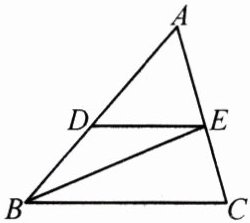 (2) 设 $\triangle ABE$ 中边 $AB$ 上的高为 $h$,则 $\frac{S_{\triangle ADE}}{S_{\triangle BDE}}=\frac{\frac{1}{2}AD\cdot h}{\frac{1}{2}BD\cdot h}=\frac{AD}{BD}=\frac{3}{2}$,因为 $\triangle ADE\sim\triangle ABC$,所以 $\frac{DE}{BC}=\frac{AD}{AB}$,即 $\frac{6}{BC}=\frac{3}{5}$,所以 $BC = 10$。
