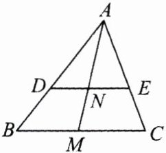 1. 如图,在△ABC中,DE//BC,$\frac{AD}{AB}=\frac{2}{3}$,M为BC上一点,AM交DE于点N.