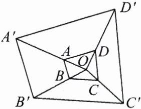 9.如图,以点$O$为位似中心,作四边形$ABCD$的位似图形$A'B'C'D'$,已知$\frac{OA}{OA'} = \frac{1}{3}$,若四边形$ABCD$的面积是2,则四边形$A'B'C'D'$的面积是______.