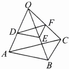 10.如图,已知$\triangle DEO$与$\triangle ABO$是位似图形,$\triangle OEF$与$\triangle OBC$是位似图形,求证:$OD\cdot OC = OF\cdot OA$.