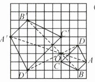 (1)请以点$O$为位似中心,在网格图中作出四边形$A'B'C'D'$,使四边形$A'B'C'D'$与四边形$ABCD$位似,且$\frac{OC'}{OC}=2$;