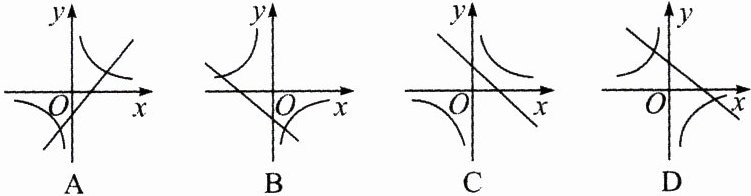 10.(教材P9复习题8变式)在同一平面直角坐标系中,函数$y = kx + 1$($k \neq 0$)和$y = \frac{k}{x}$($k \neq 0$)的图象大致是 ( )